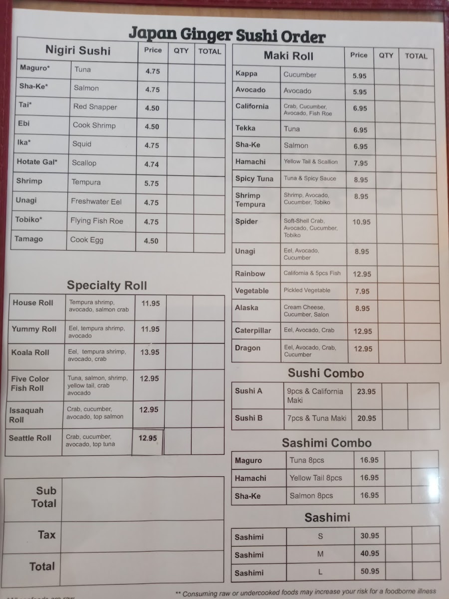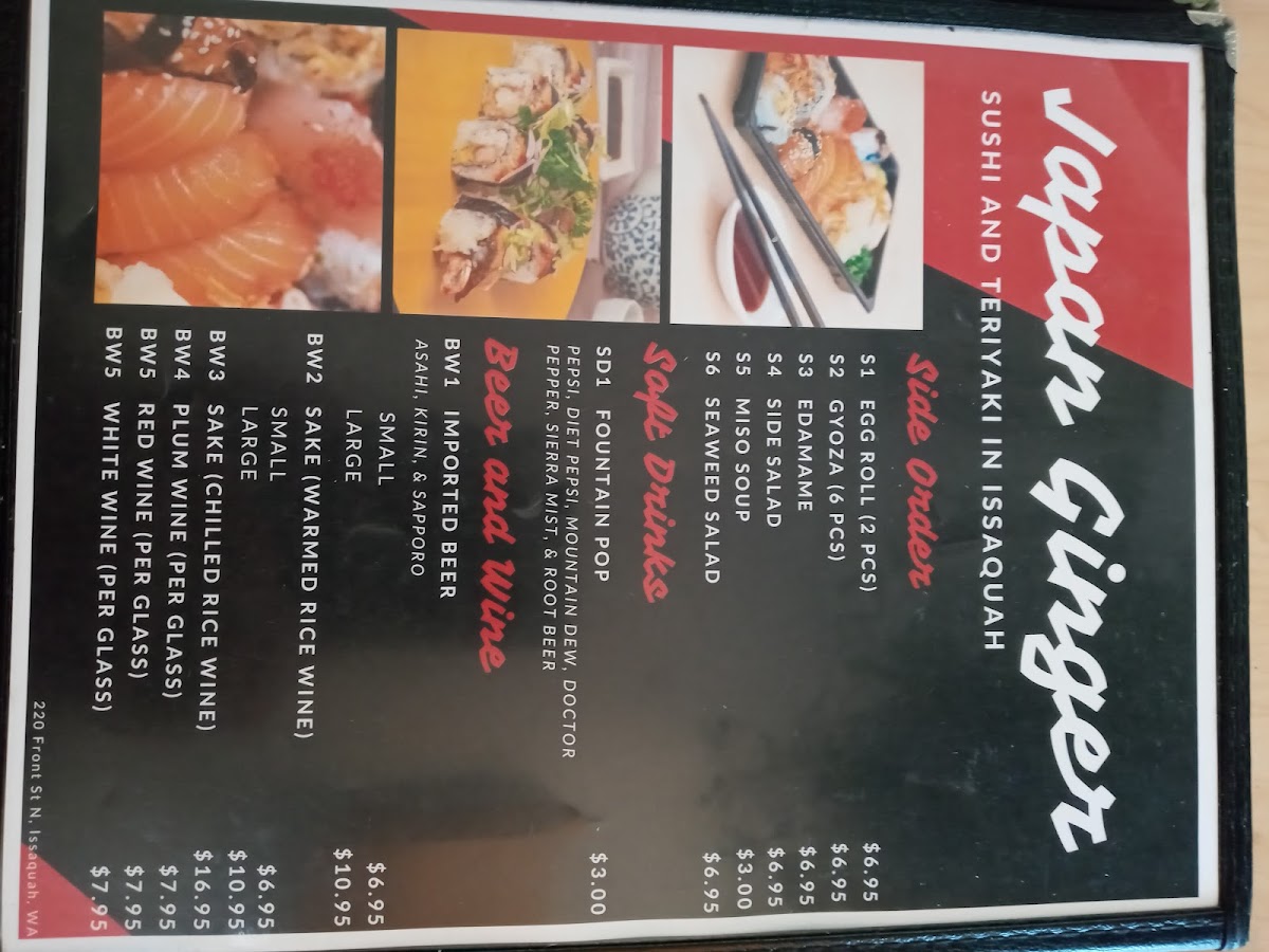 Japan Ginger Menu